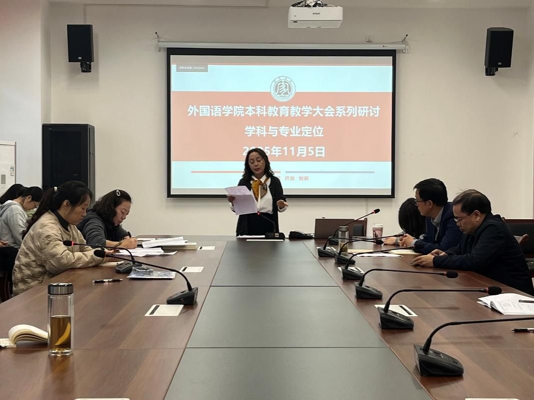 外国语学院围绕“学科与专业定位”重点专题研讨,聚焦本科人才培养的核心要素与关键环节,进行深入研讨。会议通报了各专业取得的3项阶段性成果,各专业明确了后续的建设重点。