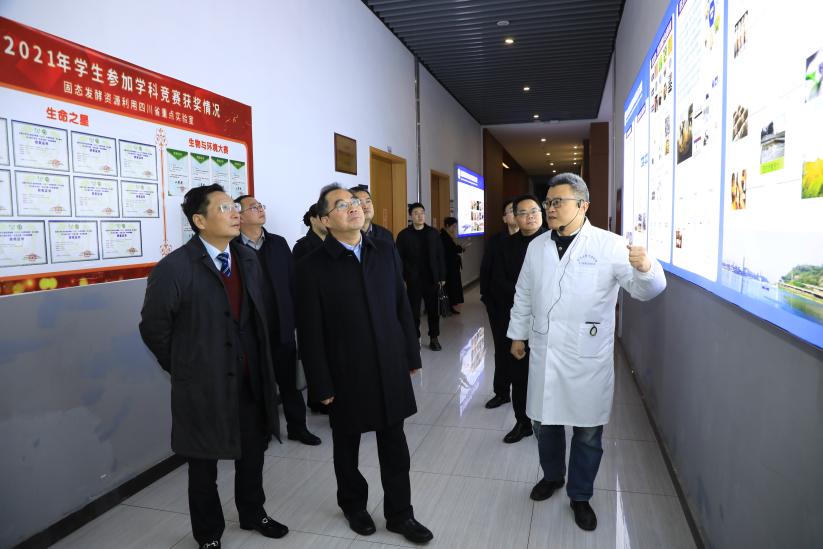 会前,牟锦毅一行参观了求实会堂和固态发酵资源利用四川省重点实验室、四川省油樟工程技术中心。
