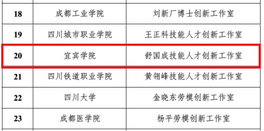 12月10日,四川省教科文卫工会发布《关于确认第四批四川省教科文卫体系统劳模和技能人才创新工作室的通知》,我校舒国成博士团队名列其中。据悉,此批全省共30个创新工作室获评 “第四批四川省教科文卫体系统劳模和技能人才创新工作室”。