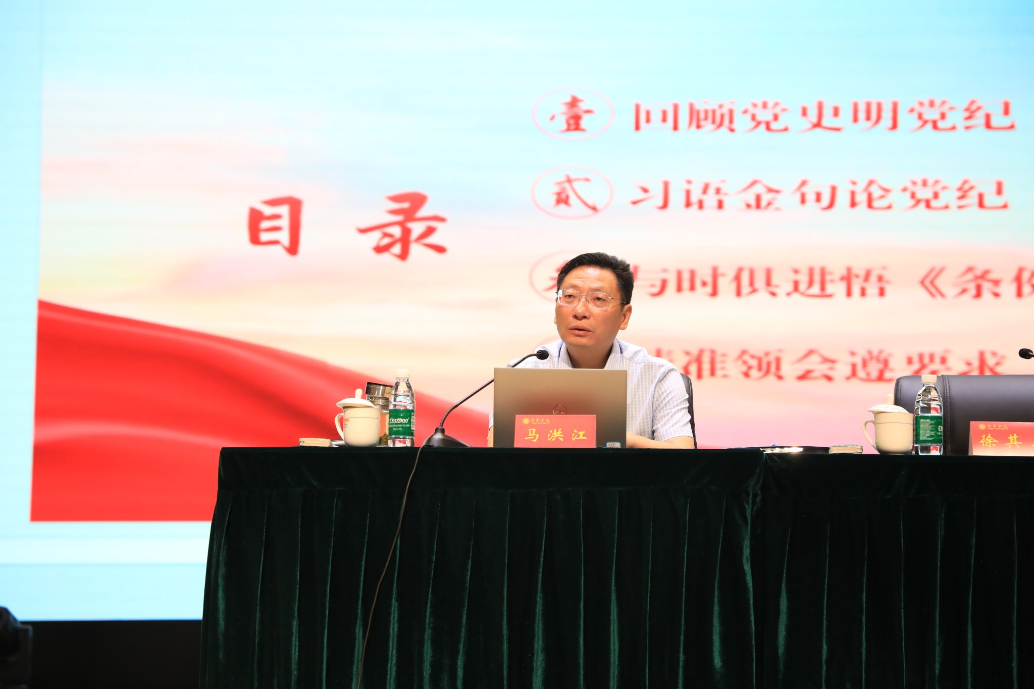 马洪江指出,纪律严明是我们党的光荣传统和独特优势。我们党在长期纪律建设实践中积累了丰富经验,留下了宝贵启示。历史是最好的教科书,我们党历经千难万险,由弱小到强大,从成立到执政,经苦难到辉煌,党的纪律是党的事业取得胜利的重要保证,一定意义上说,党的百余年奋斗史就是一部纪律建设史。加强党的纪律建设,是破解大党独有难题的重要途径、是实现党的自我革命的重要内容,也是实现强国建设、民族复兴的重要保障。