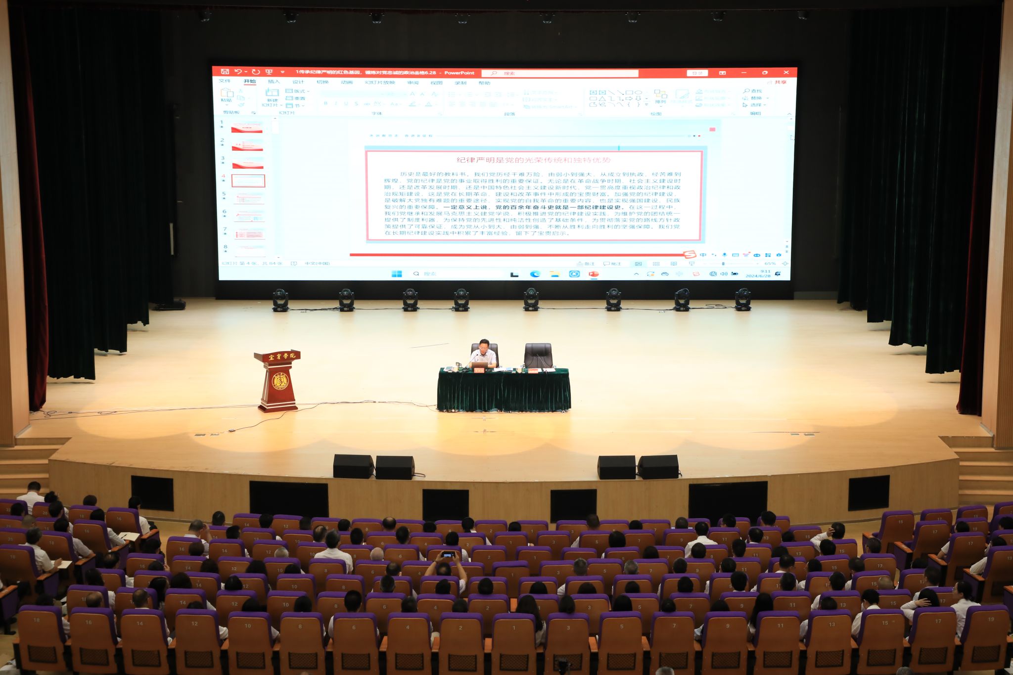 为持续推进党纪学习教育走深走实,6月28日上午,宜宾学院党委书记马洪江以《传承纪律严明的红色基因 锤炼对党忠诚的政治品格》为题讲授专题纪律党课,校领导、党委常委、副处级以上党员领导干部、非中共党员的部门主要负责人、教职工党员近800人现场听课、参加学习,驻校纪检监察组组长、党委副书记、纪委书记徐其虎主持党课。