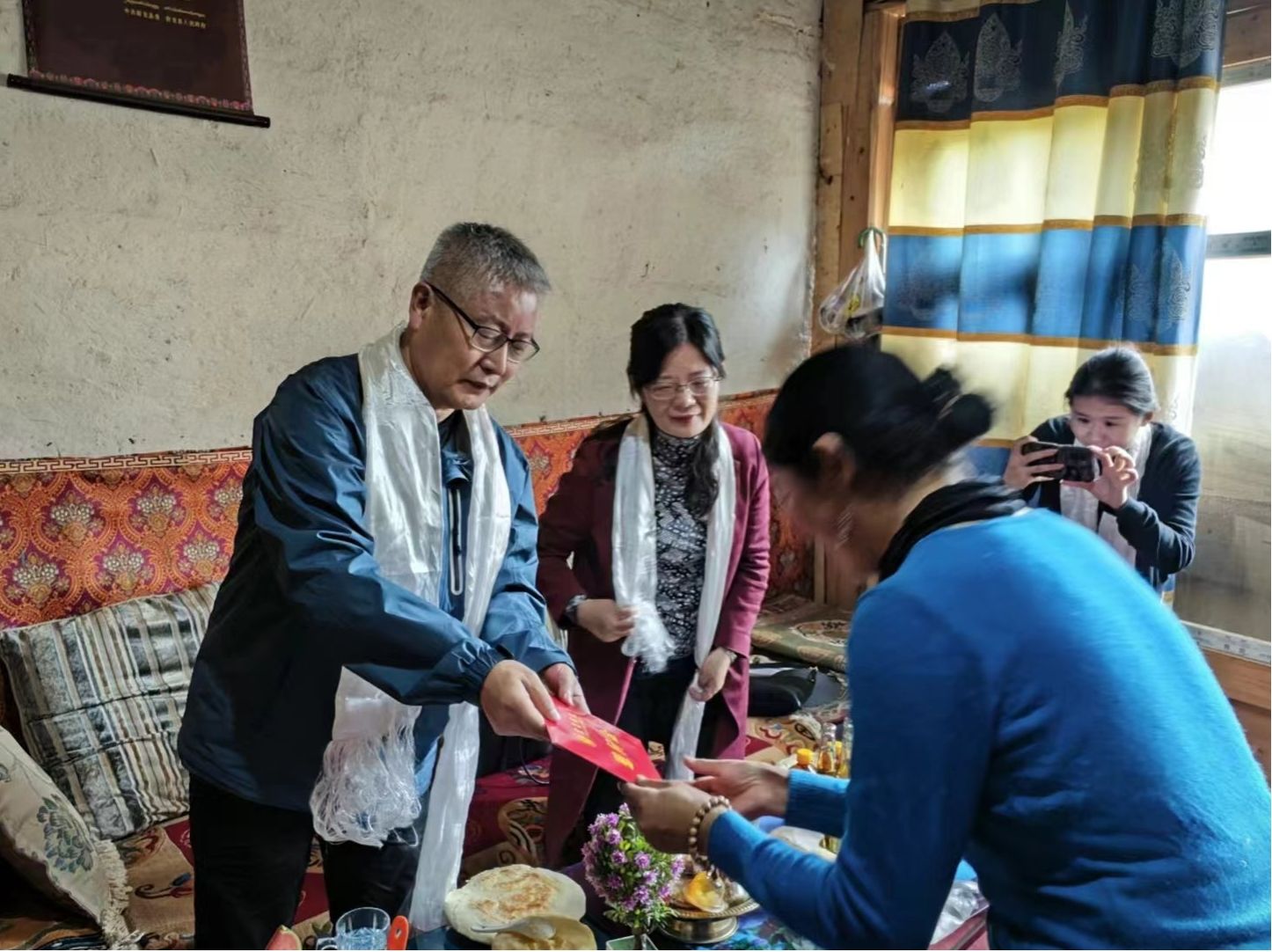 6月24日,马洪江一行来到新龙县大盖镇,召开了乡村振兴工作座谈会。汤科村党支部书记桑珠巴绒、大盖镇党委书记三郎王青分别对我校在汤科村开展精准扶贫、巩固拓展脱贫攻坚成果与推进乡村振兴有效衔接工作中给予的大力支持和帮助表示感谢。