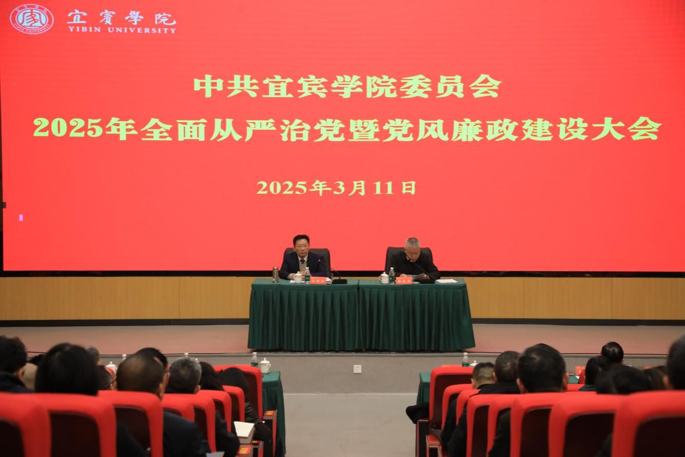3月11日上午,宜宾学院2025年全面从严治党暨党风廉政大会在临港校区求实会堂召开。会议以习近平新时代中国特色社会主义思想为指导,深入学习党的二十大精神,深入贯彻习近平总书记在二十届中央纪委四次全会的重要讲话精神,贯彻二十届中央纪委四次全会、省纪委十二届四次全会精神,总结学校2024年全面从严治党工作,安排部署2025年全面从严治党工作任务。校领导、党委常委、副处级以上领导干部参加会议。党委书记马洪江同志主持会议。