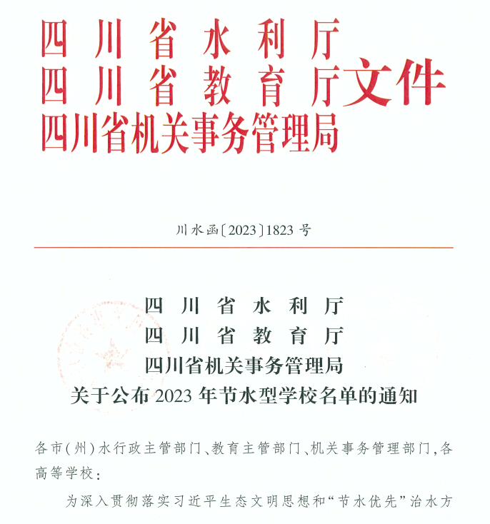 近日,省水利厅、教育厅、机关事务局联合发文,公布了2023年度四川省节水型高校名单,宜宾学院临港校区榜上有名。