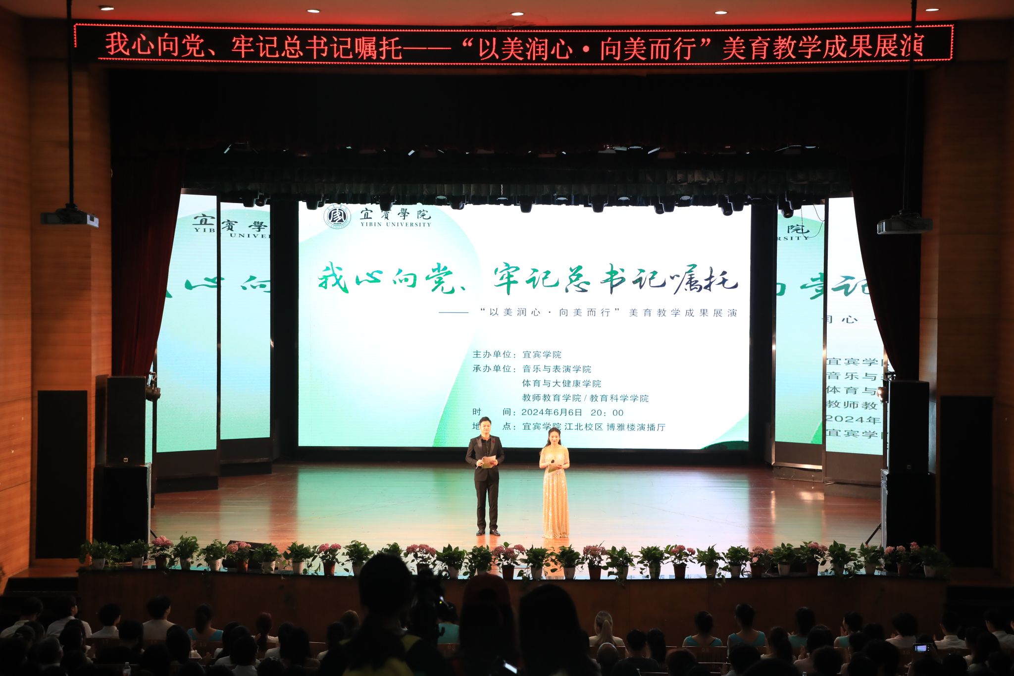 我心向党 牢记总书记嘱托——“以美润心、向美而行”美育成果展演充分展现了宜宾学院在美育教育上的丰硕成果,将美育与专业教育深度融合,提升专业素养、感受艺术力量,共同构建艺术教育以美育人、以美化人、以美培元的“大美育观”体系。