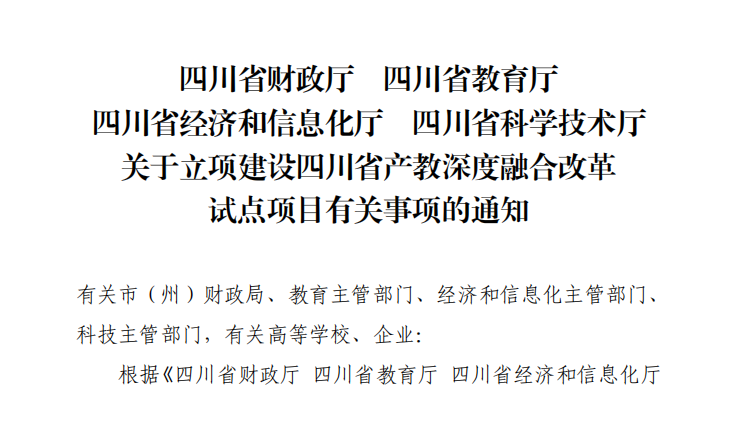 近日,四川省财政厅、四川省教育厅、四川省经济和信息化厅、四川省科学技术厅发文公布了“2024年四川省立项建设产教深度融合改革试点项目名单”,我校“精制川茶产教融合人才培养示范基地”项目获批立项人才培养类项目。该项目为学校与四川省茶业集团有限公司联合申报建设,标志着学校在产教深度融合方面取得了重要突破。
