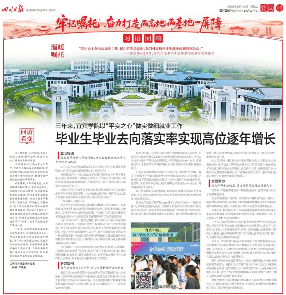 [四川日报]三年来,宜宾学院以“平实之心”做实做细就业工作 毕业生毕业去向落实率实现高位逐年增长