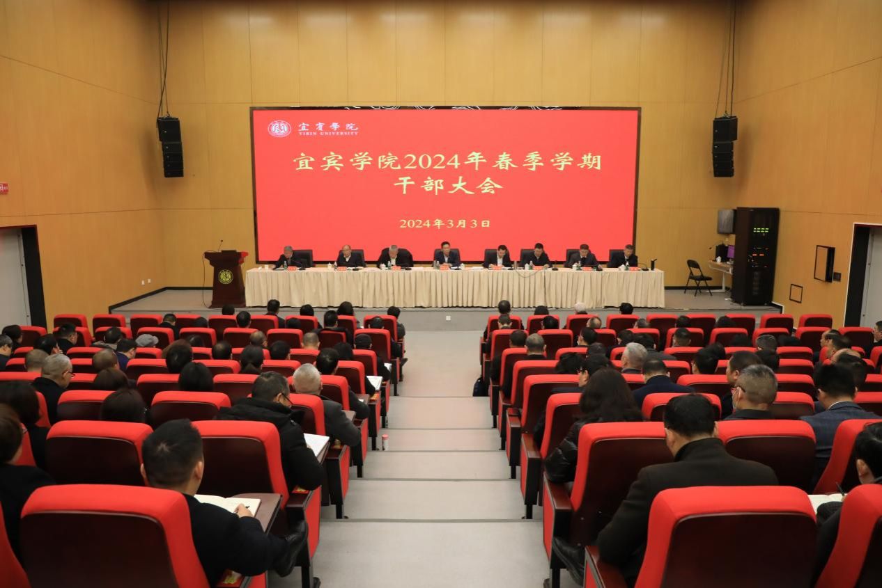 3月3日,宜宾学院在临港校区求实会堂阶梯教室召开2024年春季学期干部大会,安排部署新学期工作。党委书记马洪江主持会议并提工作要求,党委副书记、院长杜正聪部署2024年学校重点工作。党委副书记、纪委书记徐其虎,党委副书记蒋道平,党委常委、副院长王藩侯、周广均、白玉林,党委常委、党委统战部长华曦分别部署分管领域新学期重点工作,全体中层干部参会。