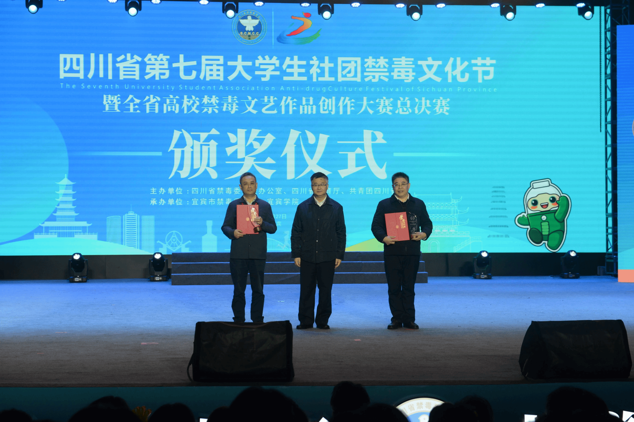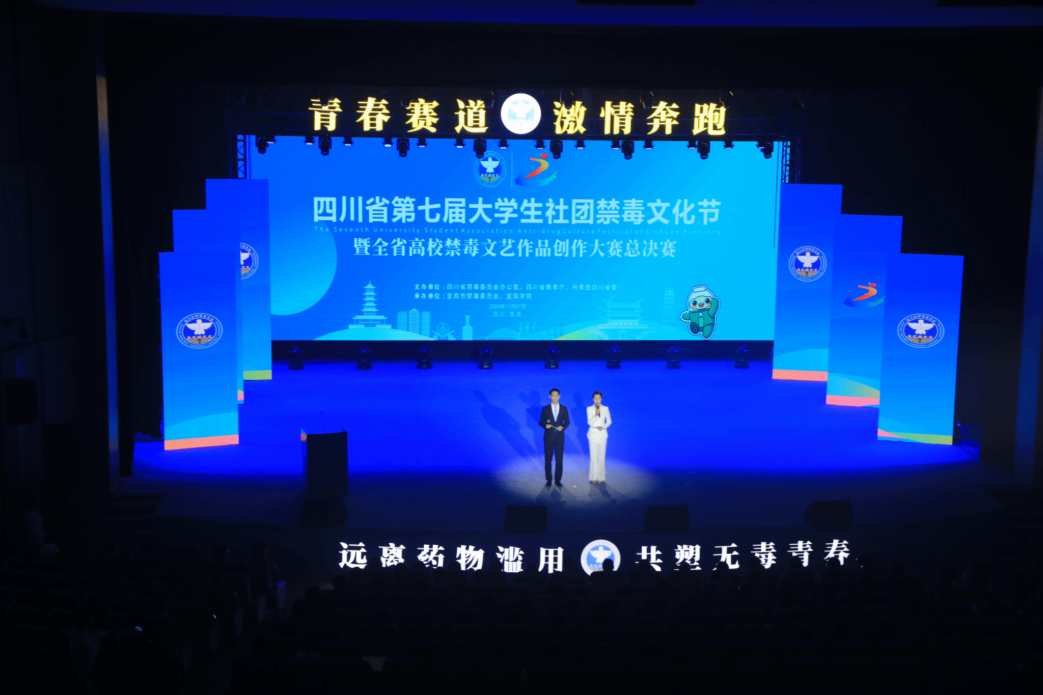 为深入贯彻落实习近平总书记关于禁毒工作重要指示精神,坚决打赢新时代禁毒人民战争,积极动员青年大学生参与禁毒斗争,推动我省普通高校毒品预防教育工作高质量发展,11月27日,由省禁毒办、教育厅、团省委联合举办的四川省第七届大学生社团禁毒文化节暨全省高校禁毒文艺作品创作大赛总决赛在宜宾学院临港校区举行。国家禁毒办副主任、公安部禁毒局副局长高伟,省禁毒委副主任、公安厅副厅长王雄,省禁毒委委员、省委网信办副主任胡卫东,省禁毒委委员、团省委副书记华旦扎西,教育厅二级巡视员付军,北京等10余个(省、自治区、直辖市)禁毒部门领导,宜宾市四大班子领导、宜宾学院校领导出席活动。