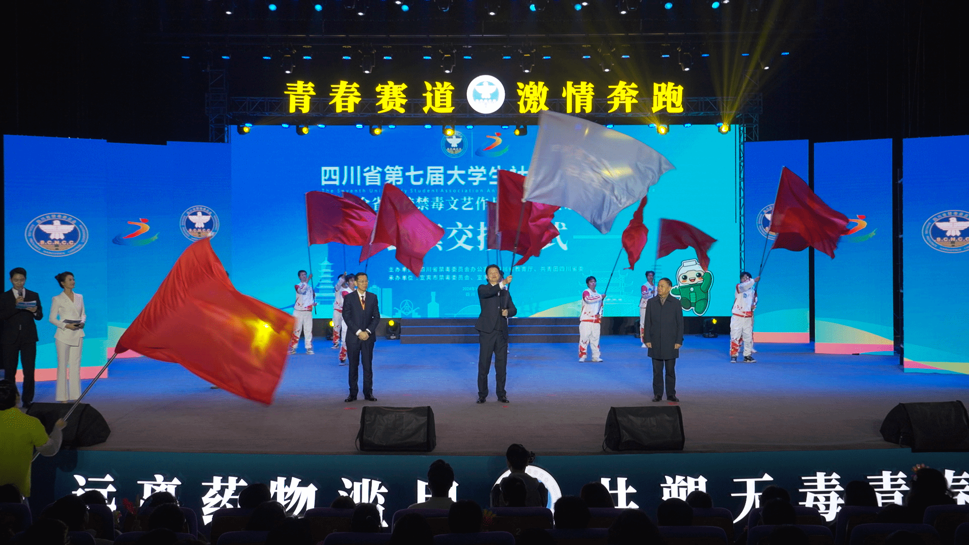 活动最后,高伟将四川大学生社团禁毒文化节会旗交到四川省第八届大学生社团禁毒文化节承办学校内江师范学院。
