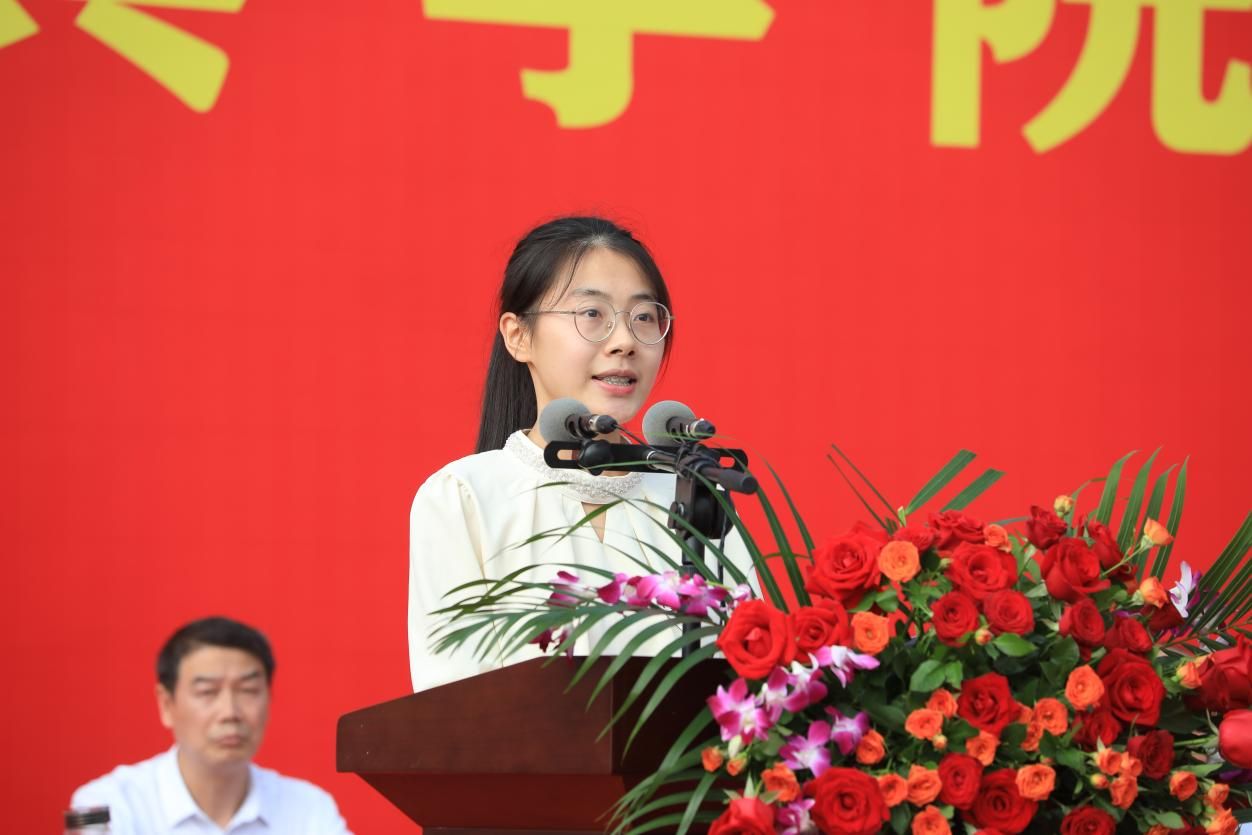 高年级学生代表2022级汉语言文学专业马浩然、2022级计算机科学与技术专业何沁燕结合自身成长经历,分享了对大学生活的理解与感悟。他们鼓励学弟学妹在新的人生阶段里勇敢尝试、坚持热爱,在奋斗中实现自我价值,在奉献中收获成长。