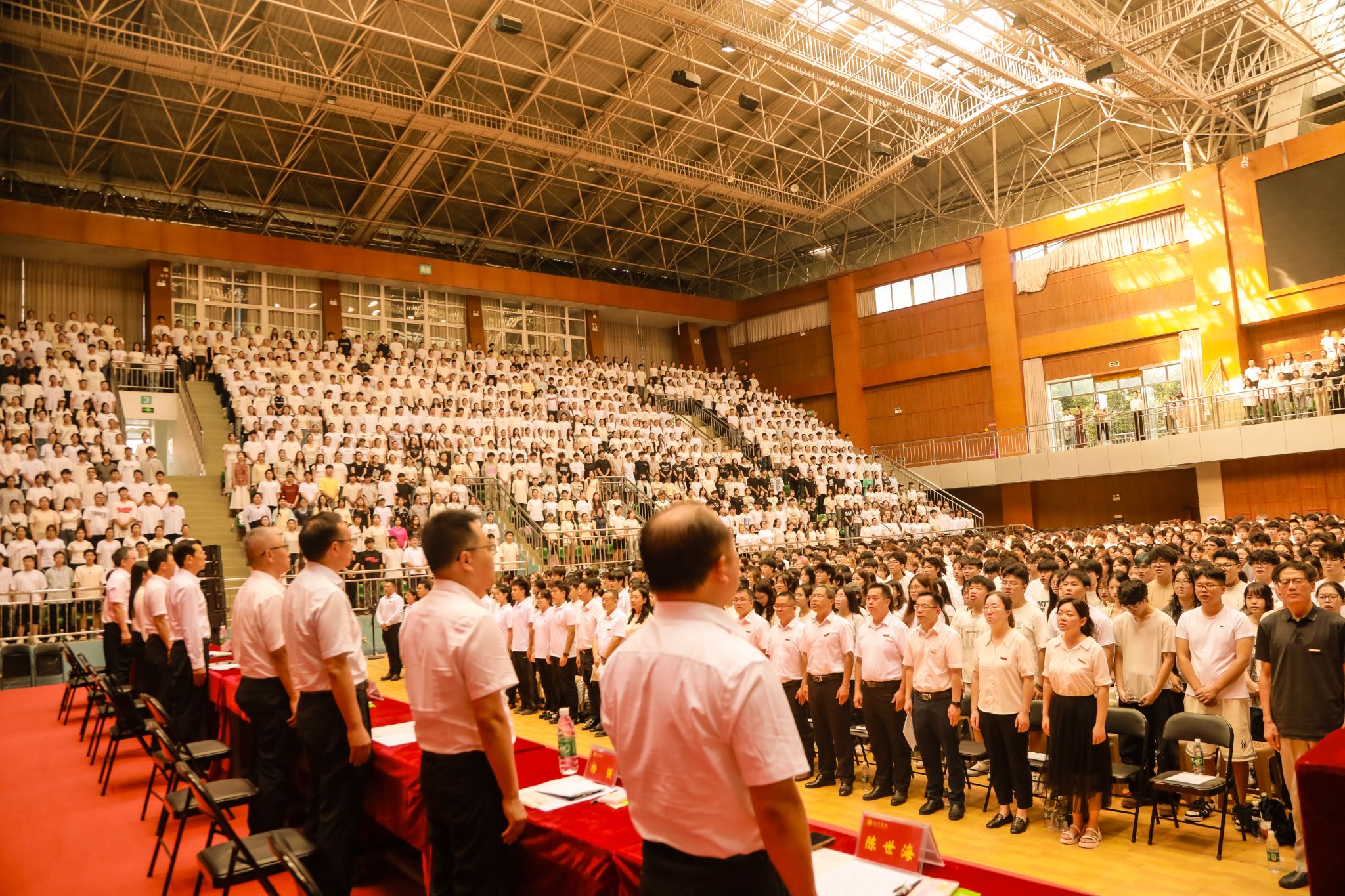 开学典礼在庄严的国歌声中拉开帷幕。