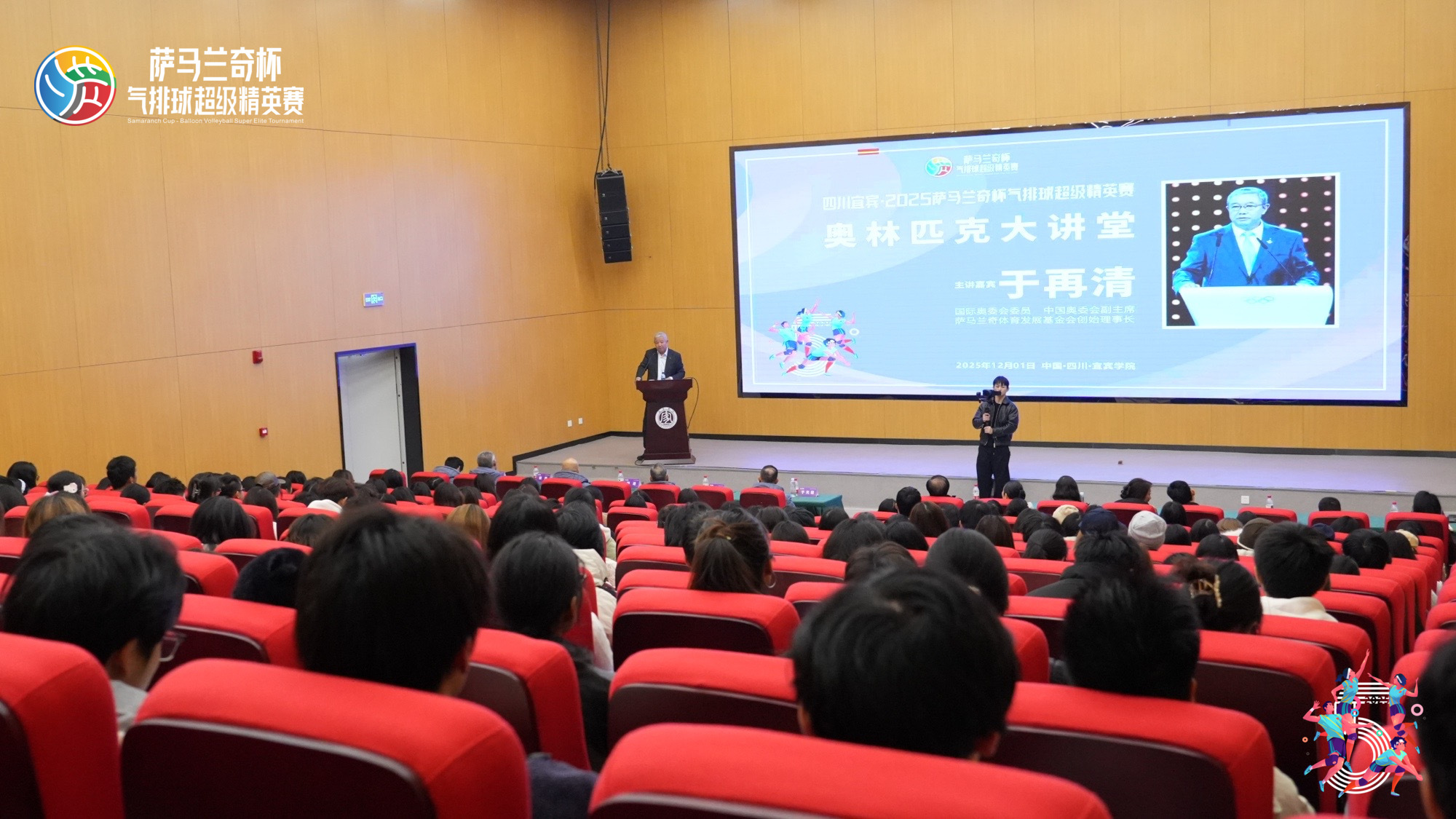 12月1日,国际奥委会委员、中国奥委会副主席、萨马兰奇体育发展基金会创始理事长于再清走进宜宾学院求实会堂,为我校师生带来了一场主题为“2025年萨马兰奇杯气排球超级精英赛”的奥林匹克大讲堂。这位曾任三届国际奥委会副主席、2022年冬奥会组委会副主席的体育界重量级人物,以其深厚的奥林匹克背景与丰富的国际体育事务经验,为在场约200名师生深入解读了奥林匹克的过去、现在与未来。