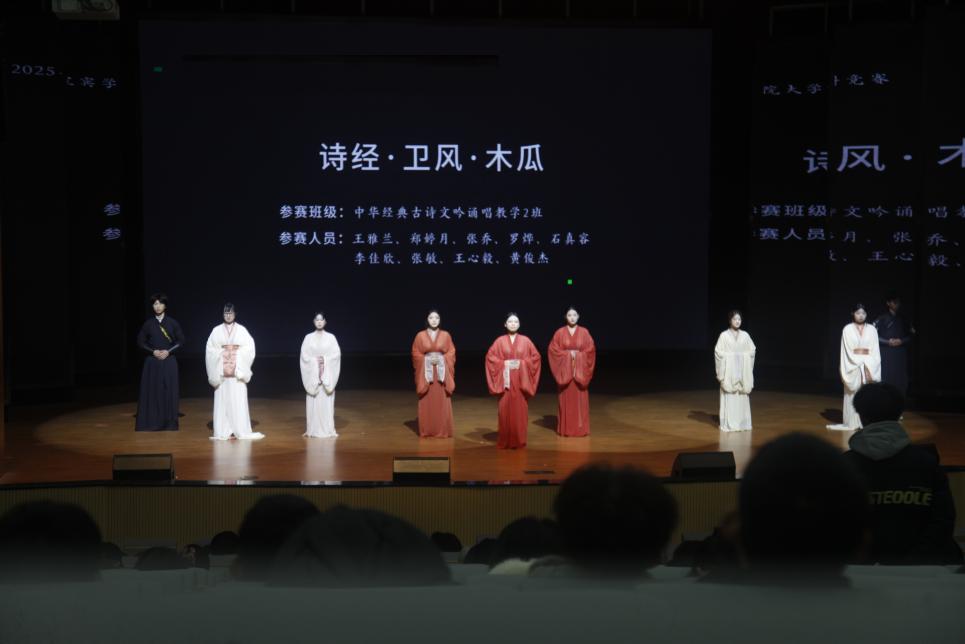 本次比赛通过吟诵唱演绎中华经典诗文,让师生在声韵流转中感受千年文脉,体悟诗情雅意。各参赛团队不仅注重对诗歌的理解与表达,更在吟诵形式、音乐配合、舞台呈现上进行了创新融合,让沉睡在典籍中的文字焕发出鲜活的生命力,实现经典在当代青年的对话中的传承。