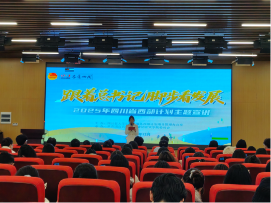 为引导西部计划志愿者深入学习领会国家关于西部地区发展的战略思想,感悟国家对西部地区发展的深切关怀与战略指引,从总书记考察西部的足迹中汲取奋进力量,12月24日,“跟着总书记的脚步看发展”主题宣讲会在宜宾学院临港校区6101会议室成功举办。宜宾学院团委兼职副书记陈子韩,以及叙州区志愿者高之昂、翠屏区志愿者付雪、南溪区志愿者陈蕾三位西部计划志愿者代表,和在宜高校大学生共同参与了此次活动。