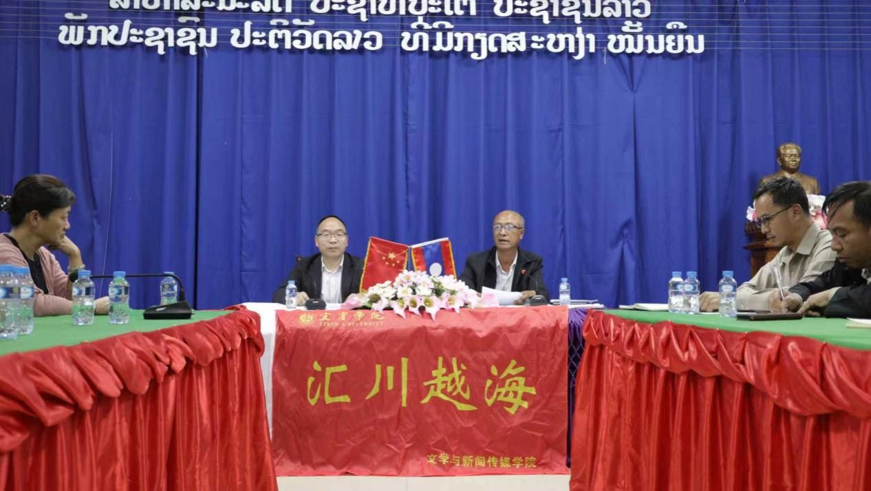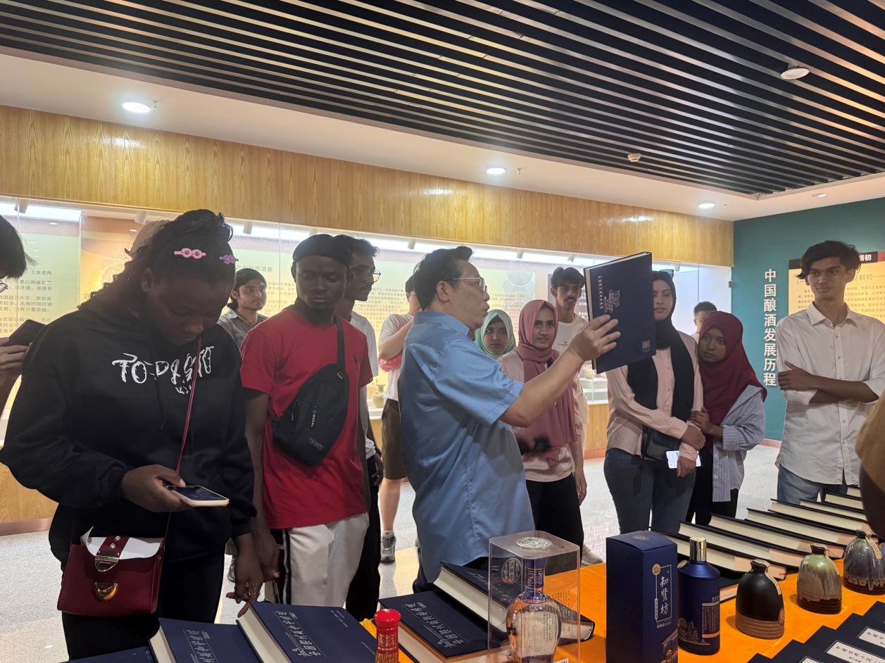 打造“汇川越海”特色实践平台,拓展国际传播新路径。第一期“酒香连澜湄”活动以酒文化为媒介,吸引老挝等国27名留学生沉浸式体验中国酒文化,通过参观酒器、酿酒技艺、酒文献展区及品酒交流,促进跨文化互鉴,为巴蜀文化海外传播开辟新渠道。第二期“墨香染湄澜”活动走进老挝琅南塔省宜宾学院老挝校区,10人师生团队通过文化讲座、情景演绎、金粉拓印技艺体验等形式,覆盖当地师生300余人次,收集受众文化认知反馈,成为新闻与传播学科“区域性国际传播”方向的实战课堂,成功探索“在地化+国际化”办学路径。