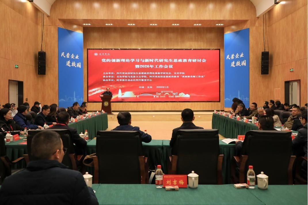 1月24日,党的创新理论学习与新时代研究生思政教育研讨会暨2026年工作会议在宜宾学院临港校区求实会堂举行。本次会议由四川省高校研究生思想政治理论课教学研究会、宜宾学院主办,宜宾学院马克思主义学院、四川省高校思想政治教育“黄树彬名师工作室”承办,时事报告杂志社四川服务中心协办。来自四川省内硕士点资格高校及科研机构马克思主义学院的专家学者和思政教育工作者齐聚一堂,围绕党的创新理论学习、研究生思政教育改革与实践等议题展开深入研讨,为新时代研究生思政教育高质量发展凝聚智慧力量。
