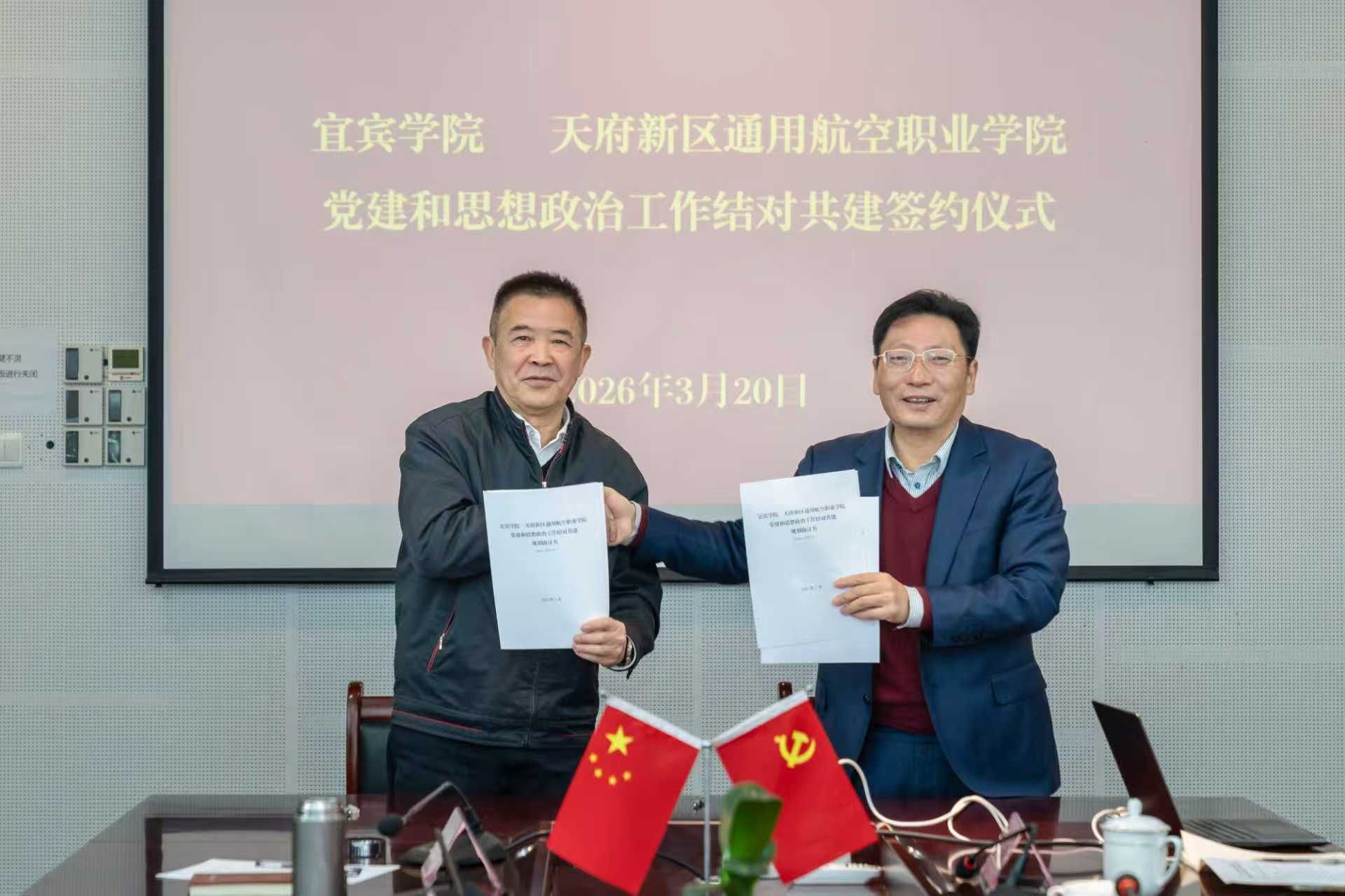 为深入贯彻落实省委教育工委关于公办高校与民办高校党建和思想政治工作结对共建的部署要求,3月20日上午,宜宾学院与天府新区通用航空职业学院在天府新区通用航空职业学院党建会议室举行党建和思想政治工作结对共建签约仪式。