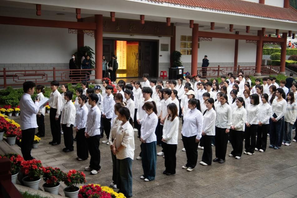 活动现场,全体学生在烈士纪念碑前整齐列队,神情肃穆。仪式伊始,全体人员为革命先烈默哀三分钟,并行鞠躬礼,以庄严礼仪表达对先烈的无限哀思与崇高敬意。默哀结束后,学生代表手持白菊,依次缓步上前献花,静立追思,一朵朵洁白的菊花承载着青年学子对先烈的缅怀敬仰,也彰显着对和平岁月的珍视之心。