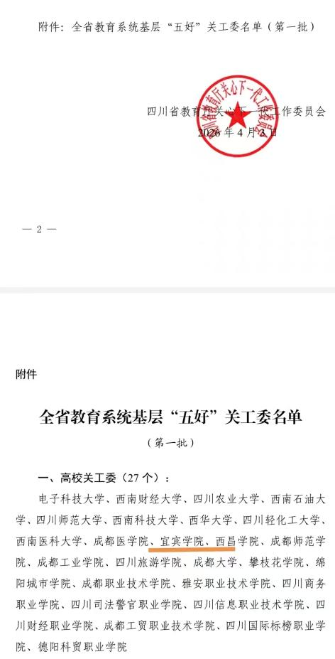 近日,四川省教育厅关心下一代工作委员会公布全省教育系统基层“五好”关工委名单,宜宾学院名列其中。