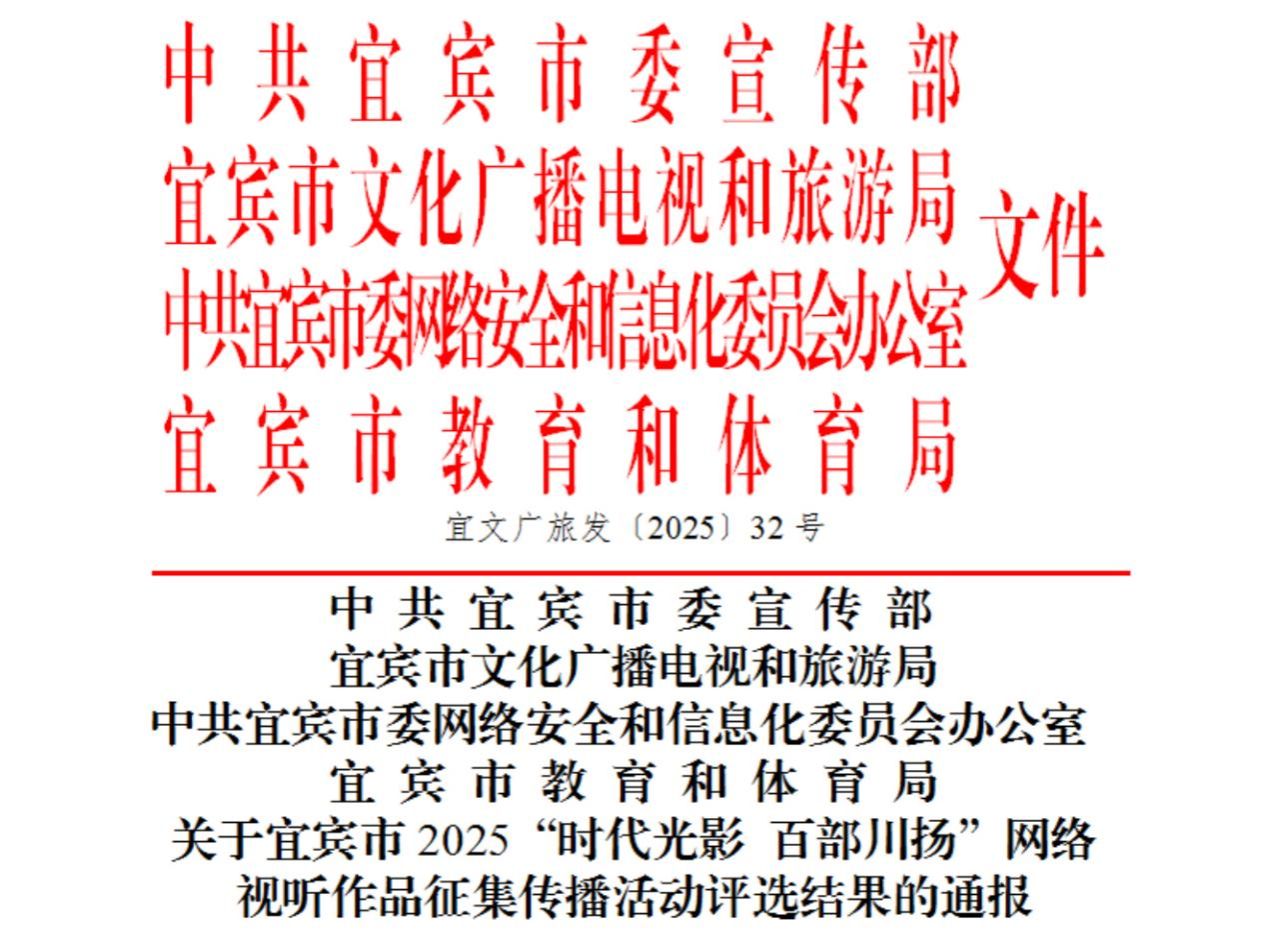 近日,宜宾市2025“时代光影 百部川扬”网络视听作品征集传播活动作品征集、评选与选送工作已圆满完成。宜宾学院党委宣传部积极组织师生参与,共有六部作品从全市203件征集作品中脱颖而出,获得佳绩。