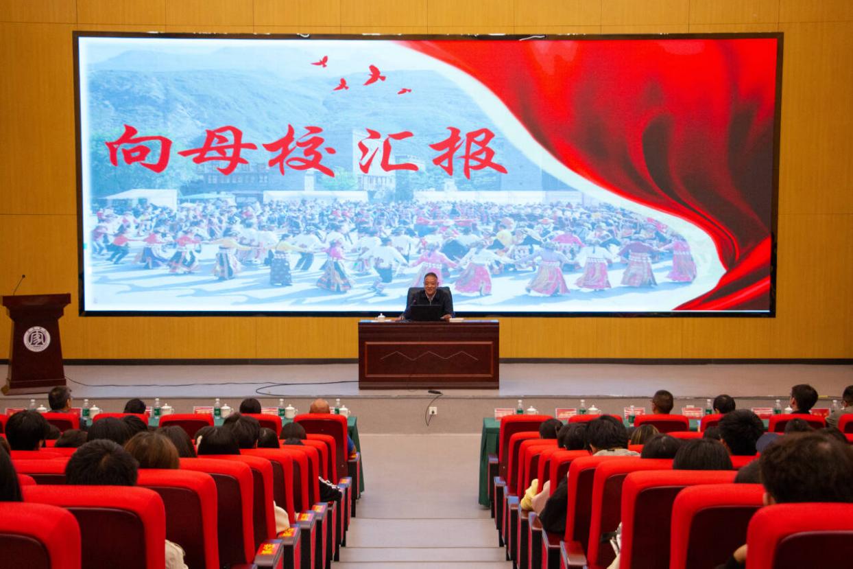 晚间,金天强受邀作为优秀校友在求实会堂阶梯报告厅作报告。报告会由校团委书记陈曦主持,200名学生代表参加。金天强结合自己的成长历程和从政经历,从“心路历程”“家乡的州情县情”“工作的收获体会”三个方面向同学们分享学习和工作经验,并以“经历是宝贵的财富”“有情怀才有责任心”“信心比黄金更重要”这三句话鼓励同学们要坚定理想信念,勇于担当责任,积极投身社会实践,为实现中华民族伟大复兴的中国梦贡献青春力量。