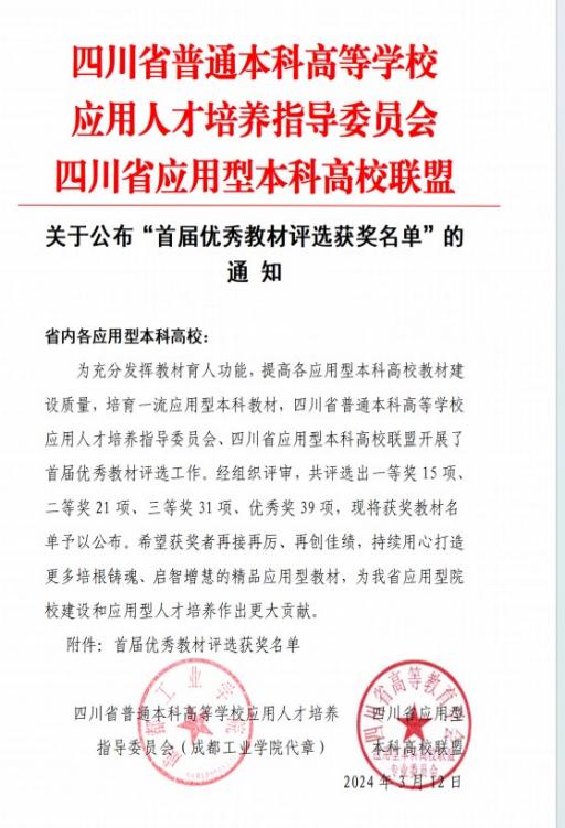 近日,四川省普通本科高等学校应用人才培养指导委员会、四川省应用型本科高校联盟公布了入选首届优秀教材评选获奖名单,农林与食品工程学部龚月桦教授及其教学团队编写的《植物生理学》教材和游玲教授及其教学团队编写的《生物工程基础实验》教材,分别荣获二等奖和三等奖;电子信息工程学院文良华主编的教材《EDA技术及应用》荣获二等奖,曾菊容主编的教材《STM32单片机应用与实践—项目驱动教学》和刘亚娟主编的教材《现代通信原理及应用》分别荣获优秀奖。