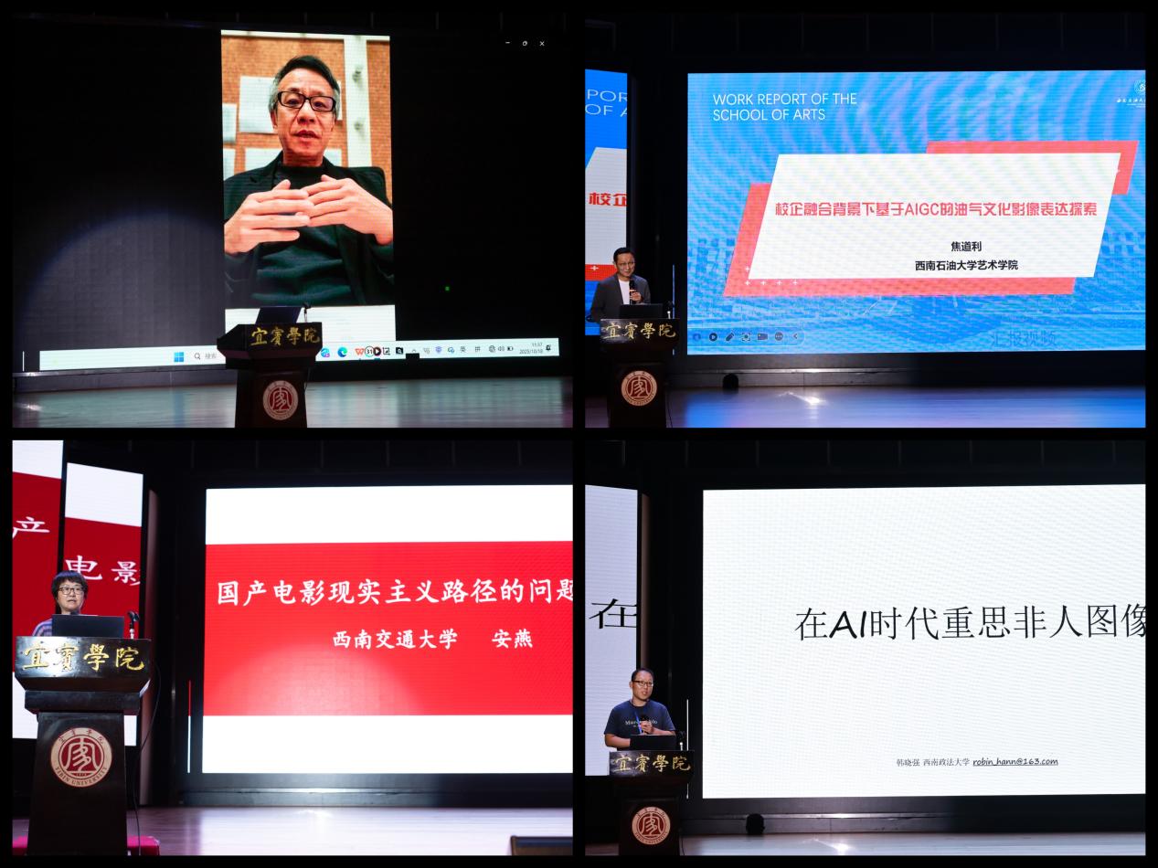 主题研讨会由学会副会长陈勇主持,学会副会长谭筱玲评议,9位专家学者围绕文化创意与传播、电影美育与乡村振兴、AI时代影视教育、AIGC与行业影像实践、新媒体与艺术生产、人文主义创作、电影现实主义路径、非人图像理论、智能技术与电影叙事等前沿议题作精彩分享。