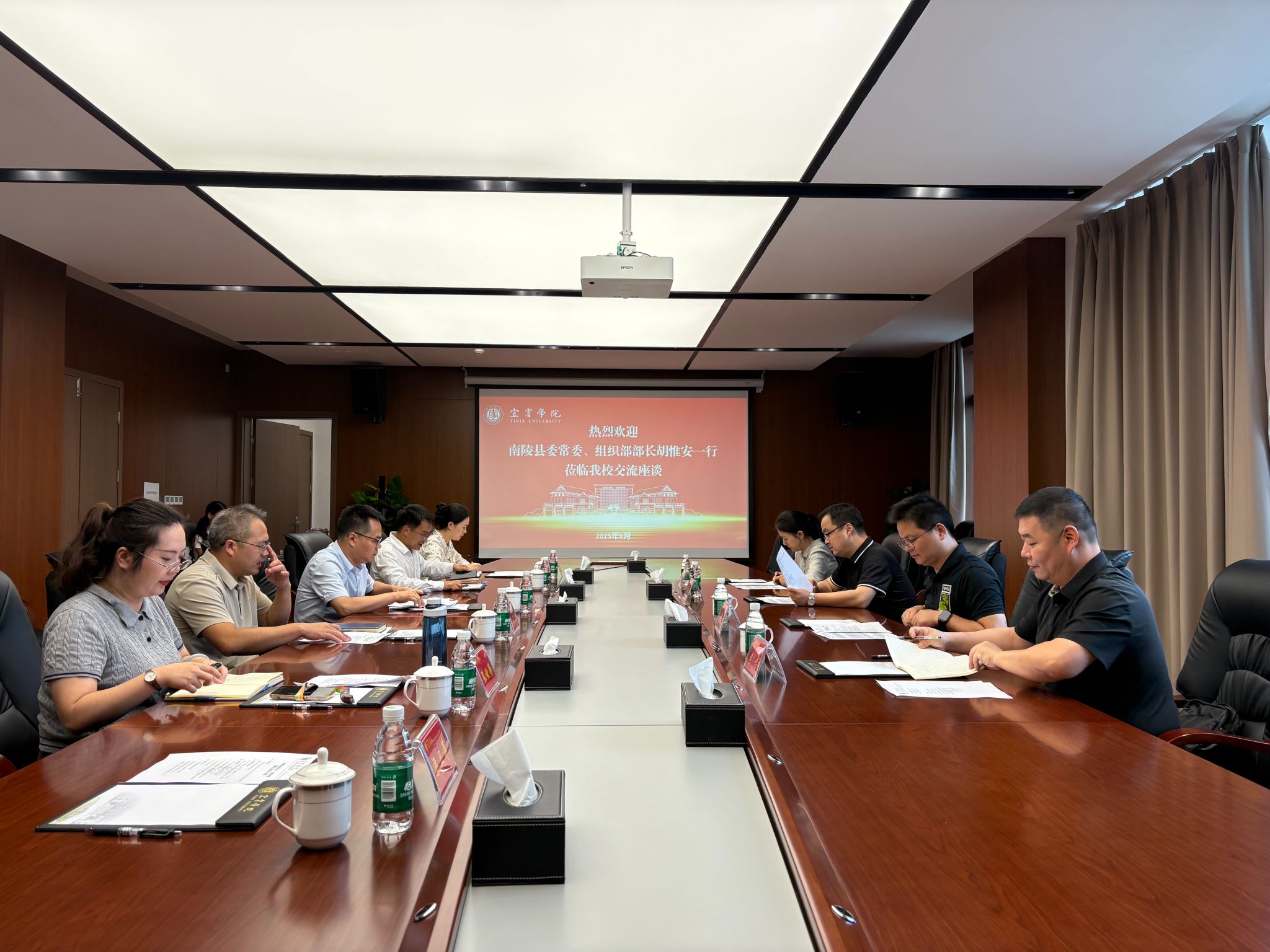 9月11日下午,安徽省南陵县委常委、组织部部长胡惟安,组织部常务副部长叶义文、人力资源和社会保障局局长强劲、人才发展集团董事长李志一行莅临我校,围绕人才培养、人才项目申报等主题开展校地合作座谈。宜宾学院党委常委、副院长杨强出席会议。