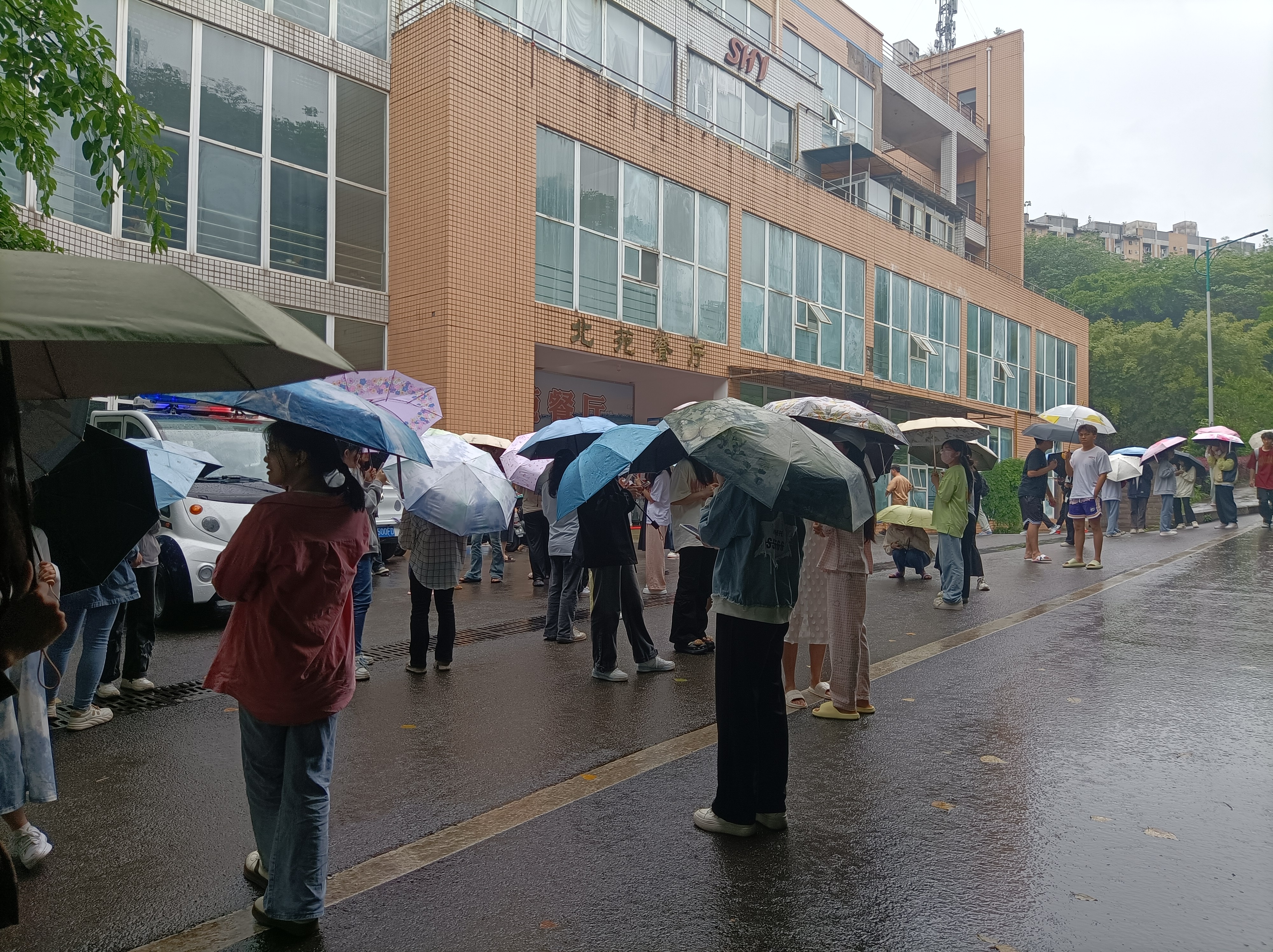 11:50,防震警报声和口哨声第一次响起,全校教室停课、食堂停餐、电梯停运。各校区学生宿舍、教学楼、图书馆、食堂等所有场所三楼以上师生就地应急避险,三楼以下的师生按照既定路线,在辅导员、教学办老师、宿管人员、安保队员等引导下,快速撤离建筑,在安保人员、物业员工的指引下有序集结到指定避险地。