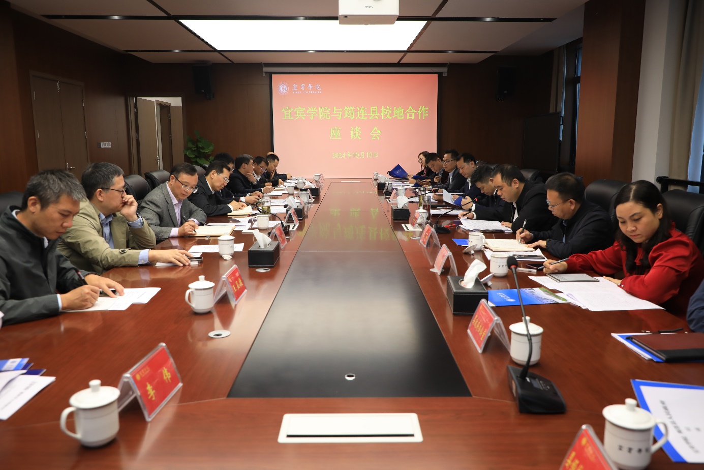 近日,宜宾学院与筠连县校地合作座谈会在宜宾学院临港校区行政楼819召开。宜宾学院党委副书记、院长杜正聪,党委副书记蒋道平,纪委副书记胡吉刚,党委常委、副院长王如渊,筠连县委书记石进,县委副书记、县长谢晓丹出席会议。会议由校地合作处处长徐洲主持。