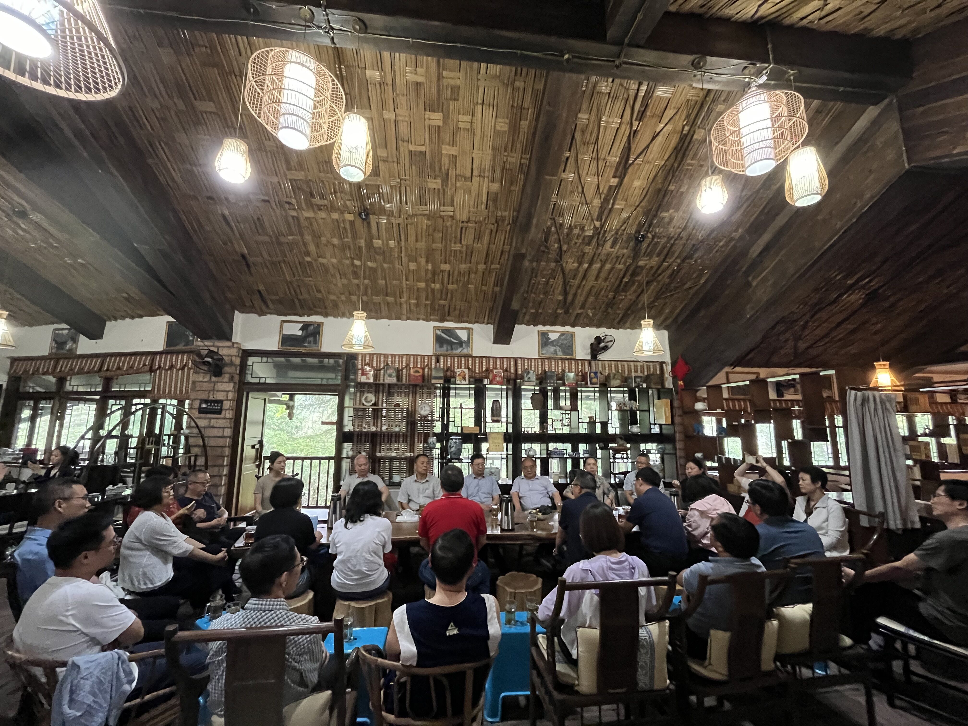 正值全世界瞩目的中国共产党第二十届三中全会召开,宜宾学院上下正以奋进的姿态、紧锣密鼓地筹备学校第四次党代会召开之际,为深入贯彻落实人才立校战略,发挥高级专家、劳模先进在学校事业发展中的关键性作用,凝聚学校内涵式高质量发展的智慧和力量,7月15日下午,学校组织正在眉山七里坪疗休养的高级专家、劳模先进召开茶话会。受学校党委书记马洪江、院长杜正聪委托,学校党委副书记、校工会主席蒋道平出席并讲话,党委常委、副院长王藩侯出席会议,校工会常务副主席刘祚玉(正处级)、党委教师工作部(人事处)副部(处)长罗显康、参加疗休养的全体高级专家和劳模先进参会。蒋道平主持会议。