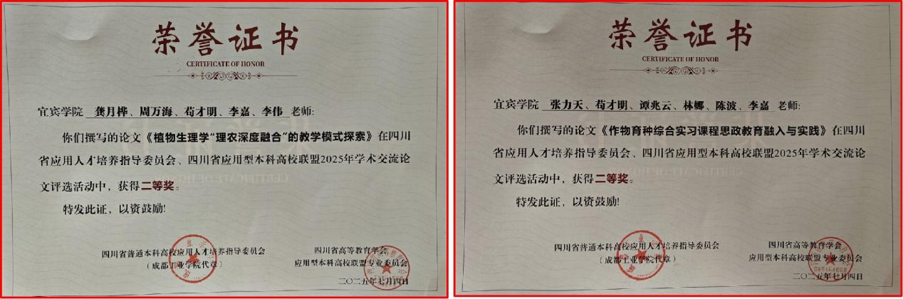 会后,应用型本科高校联盟对2025年学术交流优秀论文进行了颁奖,我校龚月桦撰写的《植物生理学“理农深度融合”的教学模式探索》和张力天撰写的《作物育种综合实习课程思政教育融入与实践》荣获二等奖。