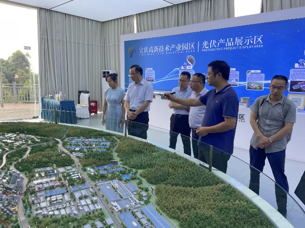 在龙柯陪同下,王如渊一行来到高新之窗,了解宜宾高新区规划建设总体;前往四川和光同程光伏科技有限公司,观看企业创办历史、参观智能化生产车间、考察企业生产运营,调研产业链、创新链、人才链融合发展。