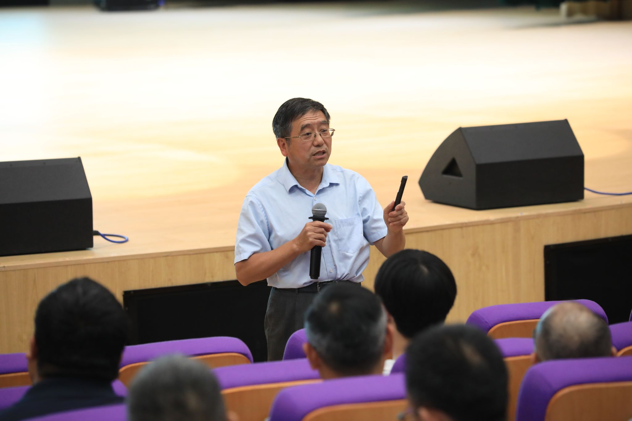 黄尚军教授结合亲身经历和实践,分享了他对“师德师风”的理解、感悟,并分别从“用丰富的教学内容感染学生”“用认真负责的态度指导学生”“用满腔的热情关爱学生”“用勤奋敬业的治学影响学生”“用积极的人生观引导学生”五方面,情真意切地诠释了“灵魂工程师”的真正内涵,阐释了“灵魂工程师”的崇高与神圣。授课过程中,他为大家分享了多个生动而感人至深的故事,吸引了老师们的深度关注,现场掌声不断,气氛热烈,让师生们心灵为之震撼。