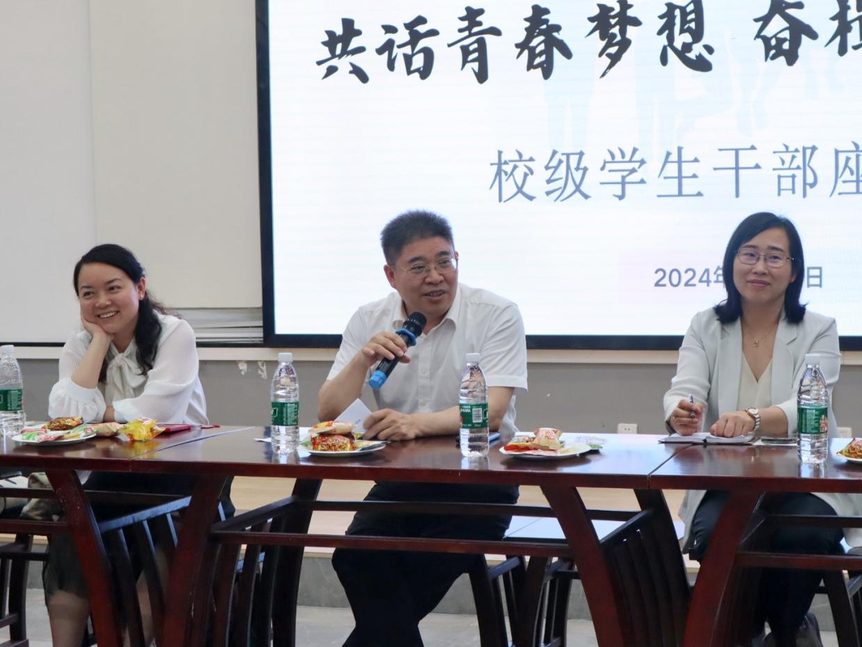 陈曦鼓励同学们畅所欲言,结合思想谈认识、结合岗位谈体会、结合工作谈成长、结合发展谈需求、结合问题谈建议。同学们逐一发言,积极从“学生发展”“创新创业”“就业”“工作”“考研”“学校基础设施建设”等方面,分享各自心得和经验。大家互相探讨、友好交流,现场氛围融洽。