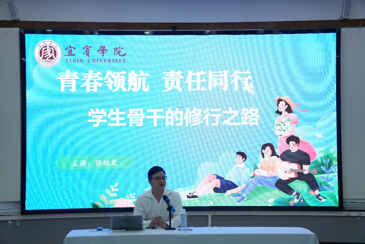 宜宾学院团委副书记张皓岚,围绕学生骨干如何发挥带头作用为同学作实事专题讲座。他指明了学生骨干履职尽责、服务同学的路径,并指出学生骨干是我们党和国家事业的后备军,而成为团学组织的一员,要深刻意识到这不只是为自己人生履历添彩,更是要落实到为同学服务,创新、多方式地为同学办实事。