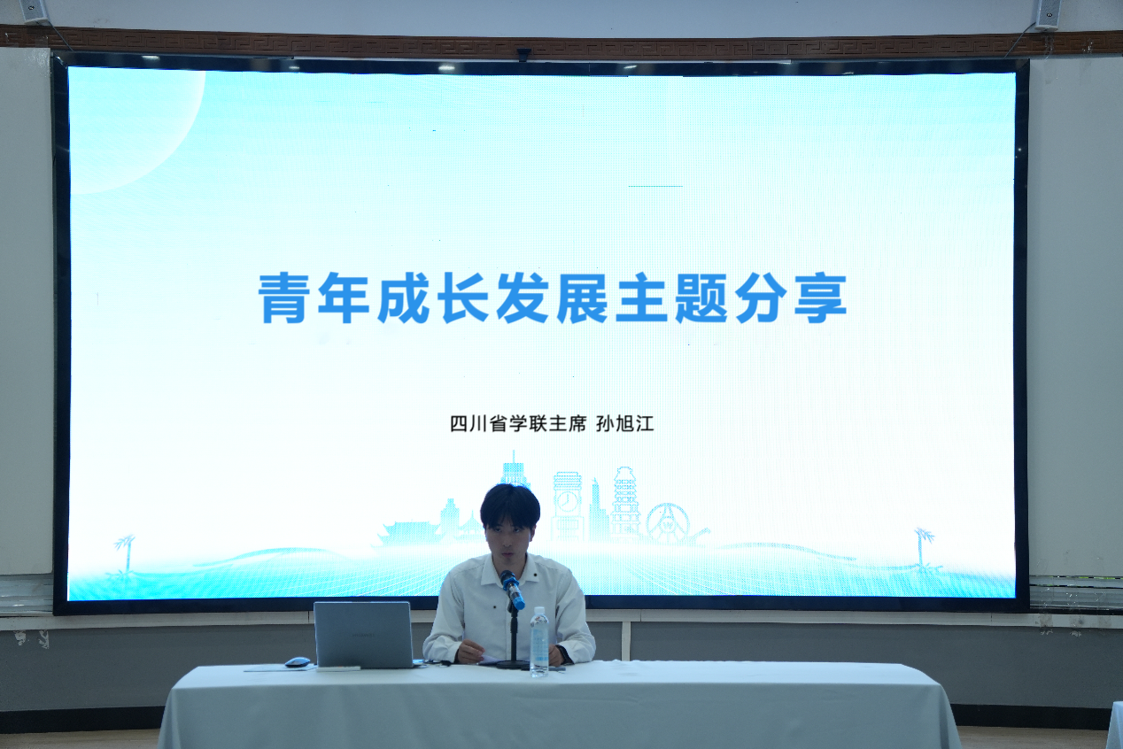 四川省学联主席孙旭江,围绕青年成长发展进行主题分享。他强调青年是党和人民事业发展的生力军,青年组织更是将青年群体力量牢牢凝聚起来的桥梁纽带,在当今时代,明确青年工作的战略定位至关重要。