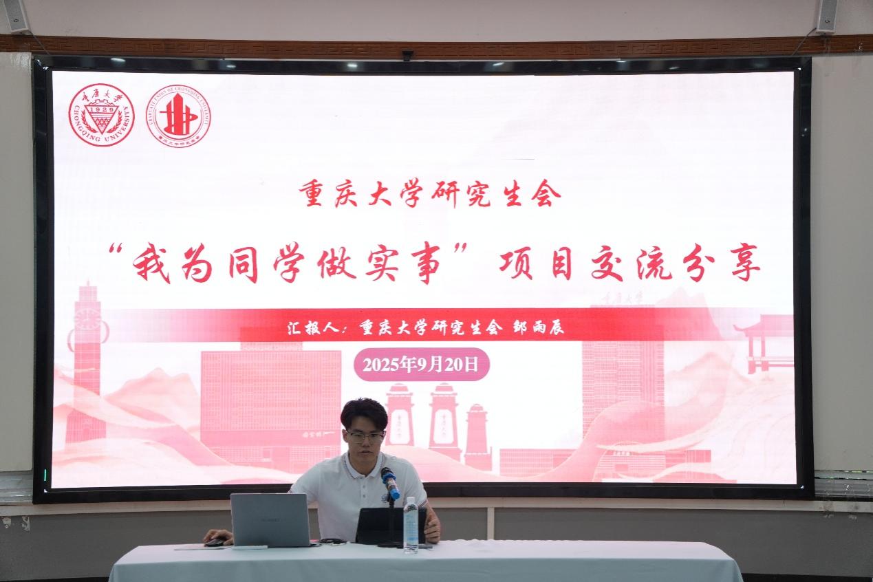 重庆大学、四川农业大学、重庆化工职业学院、宜宾学院高校代表就川渝两地高校“为同学做实事”项目进行交流分享,现场互动探讨不断,凝聚共识效果良好,为后续川渝两地高校团学工作协同发展奠定了坚实基础。