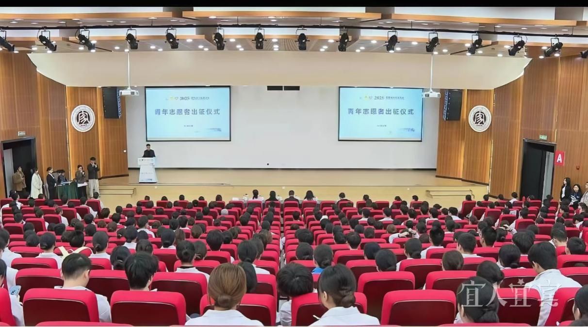 11月5日,2025世界动力电池大会青年志愿者出征仪式在学校求是会堂举行,300名青年志愿者整装集结,将分赴岗位为大会提供全方位志愿服务。仪式由共青团宜宾市委副书记赵静主持,市政协副主席傅婷,共青团宜宾市委书记阳兵,市政府办公室党组成员、副主任赵小平出席。
