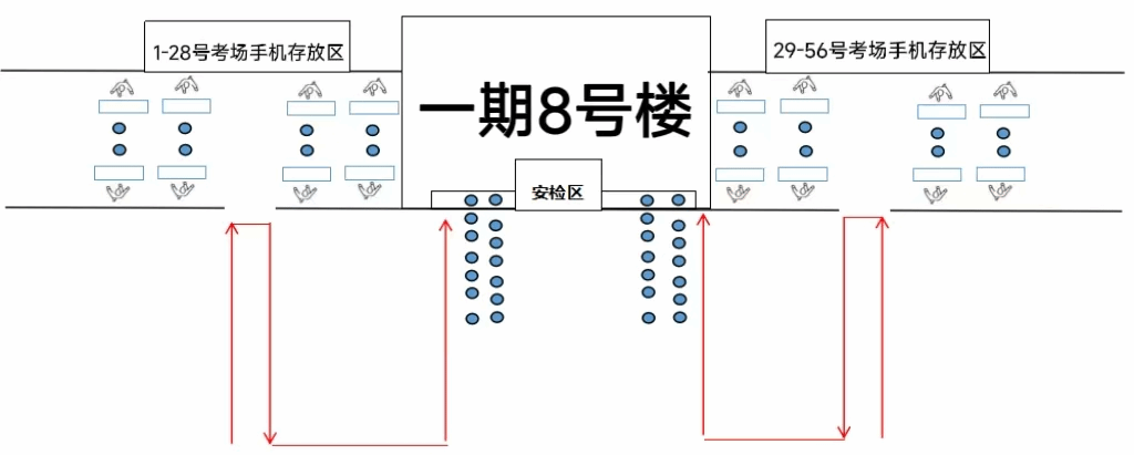 一期8号楼存放点(左侧1-28号考场,右侧29-56号考场)