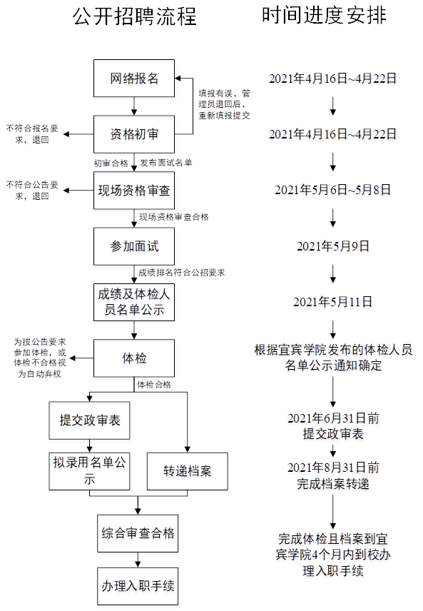 宜宾学院根据各具体招聘岗位通过资格初审人员,进行审核确认,满足岗位报考条件的人员名单将于2021年4月27日8:30前在宜宾学院官网公告栏发布,请报考人员密切关注考试动态。