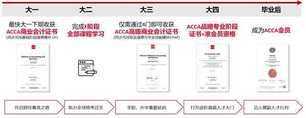 财务管理ACCA科学安排大学四年ACCA课程学习与考试进度,学生可稳步提升专业技能水平,收获全球名企、名校认可的ACCA各阶段执业资格证书,就业、升学更具优势。
