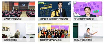 邀请职业规划导师、名校招生官,开展职业生涯规划指导、考研/留学指导、就业/创业指导,帮助建立清晰的未来规划。