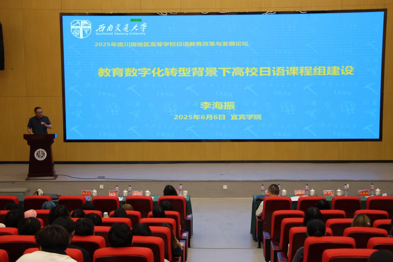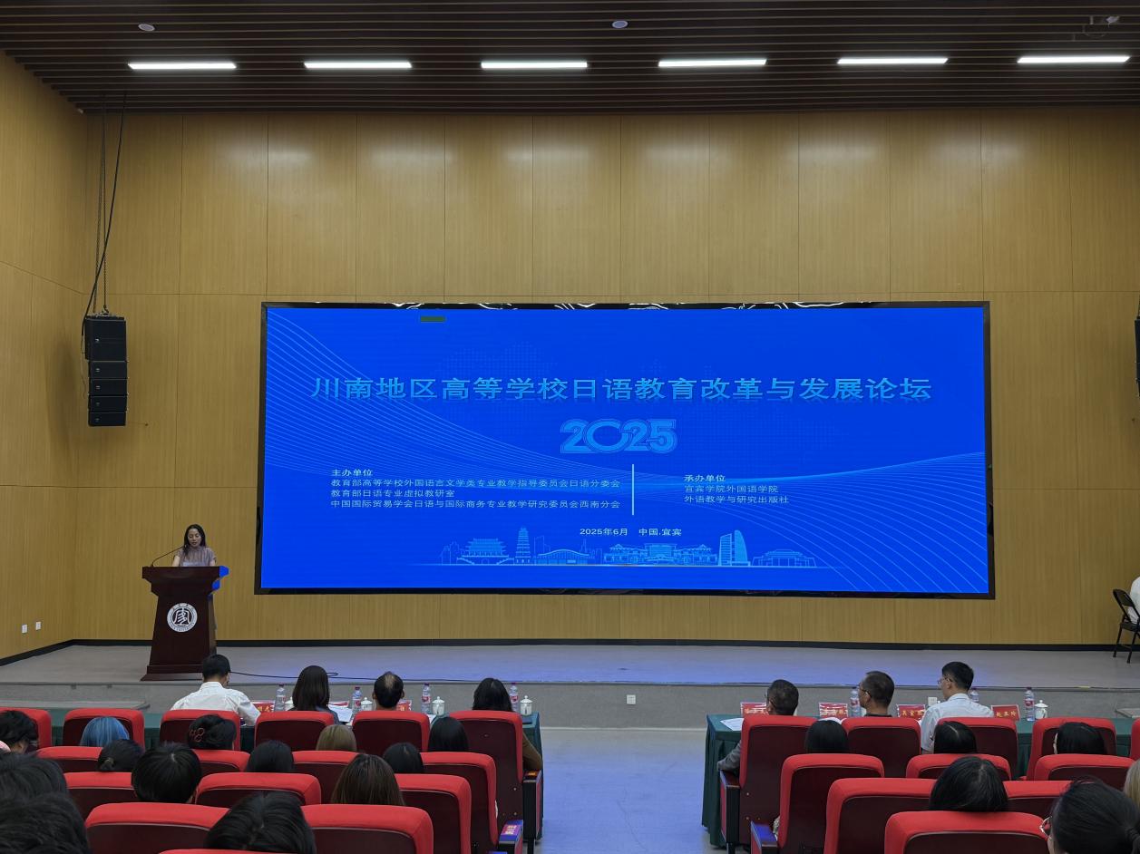 6月6日,2025年度川南地区高等学校日语教育改革与发展论坛在宜宾学院临港校区举行,本次论坛由教育部高等学校外国语言文学类专业教学指导委员会日语分委会、教育部日语专业虚拟教研室、中国国际贸易学会日语与国际商务专业教学研究委员会(原中国日语教学研究会)西南分会联合主办,宜宾学院外国语学院、外语教学与研究出版社联合承办。