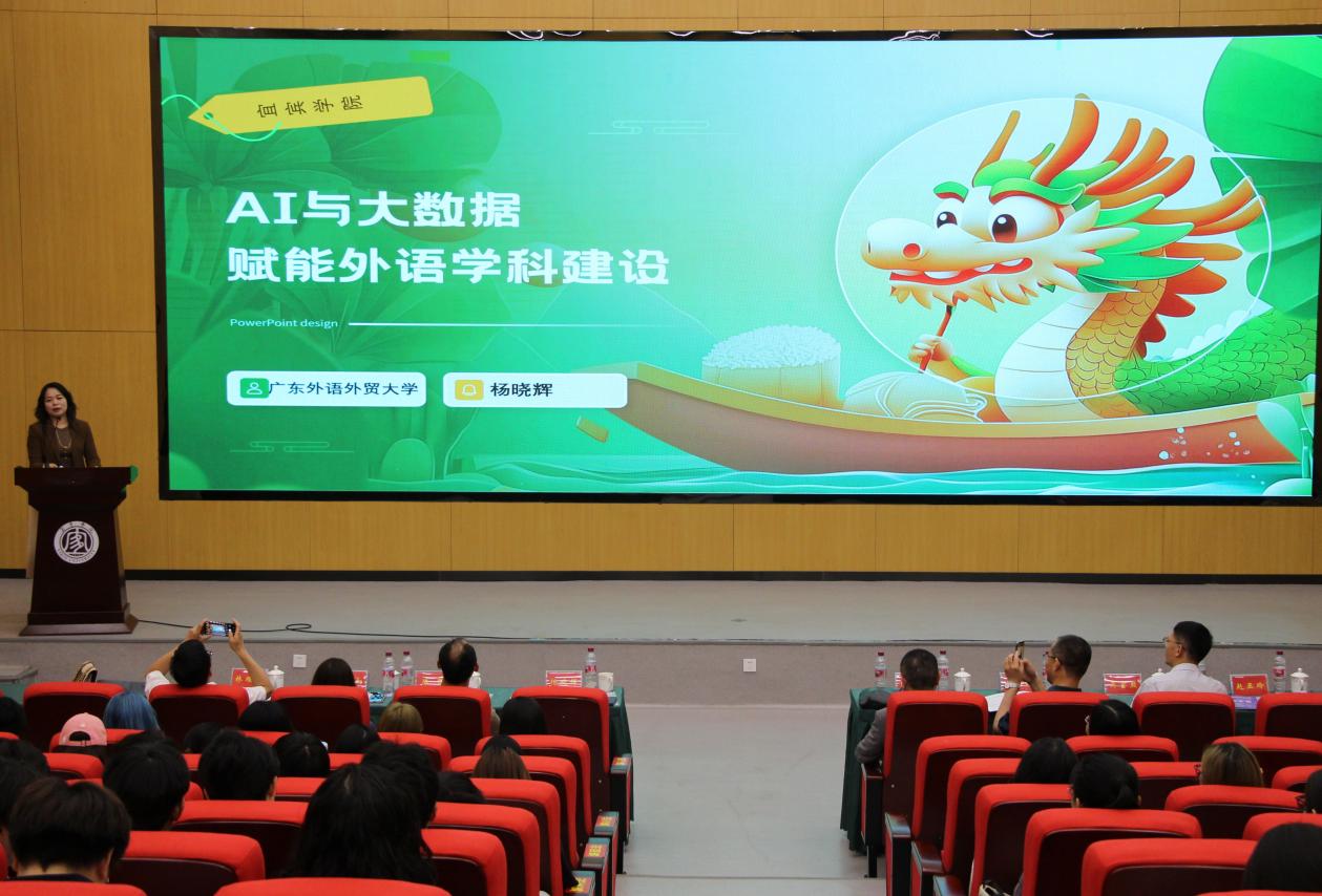 广东外语外贸大学日语语言文化学院院长,教授,博士生导师杨晓辉教授以《AI与大数据如何赋能外语学科建设》为题作了主旨报告。她指出,在数字化转型与新文科建设的双重驱动下,人工智能(AI)与大数据技术正深刻重塑外语学科的发展路径。报告探讨了 AI 与大数据如何赋能外语学科的建设,并尝试提出了转型的实践框架,为外语学科在人工智能的快速发展背景下创新日语学科的教育教学提供了新的思路,新的启迪。