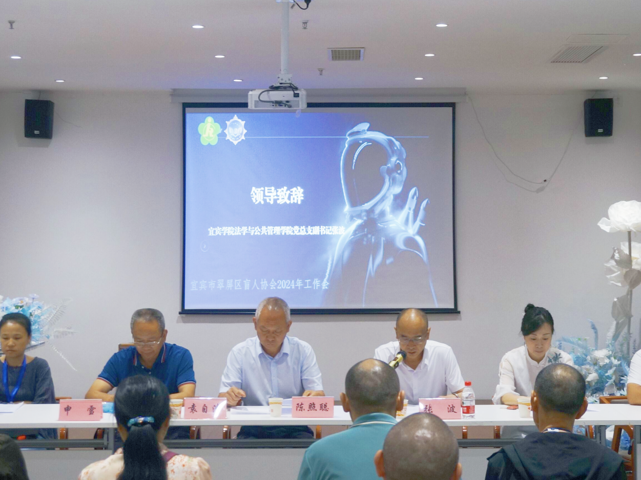 罗崑介绍了宜宾市翠屏区图书馆扶残助残工作的相关举措。翠屏区盲人协会代表缪雪珏向与会者报告了2023年的工作成果和2024年的工作安排。视障代表上台发言,表达了对社会各界关爱的感激之情,展示了坚强乐观的生活态度。