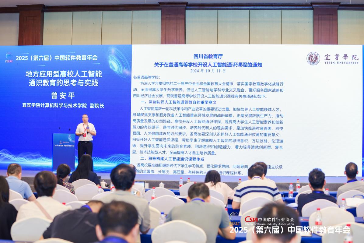 宜宾学院计算机科学与技术学院副院长曾安平作了题为《地方应用型高校人工智能通识教育的思考与实践》的大会主题报告。