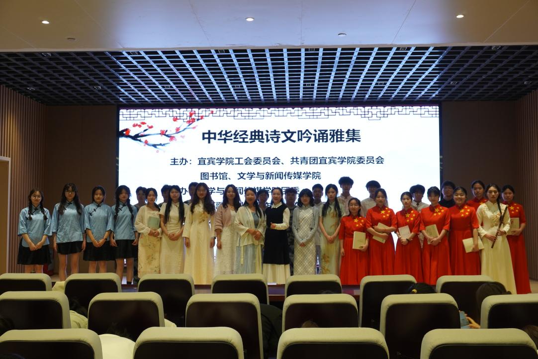 4月28日,中华经典诗文吟诵雅集在宜宾学院临港校区图书馆学术报告厅顺利举行。本次活动由宜宾学院工会委员会、共青团宜宾学院委员会、图书馆以及文学与新闻传媒学院联合主办,文学与新闻传媒学院团委协办,弦而歌之刘艳工作室和弦歌吟诵社共同承办。