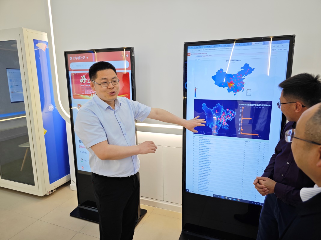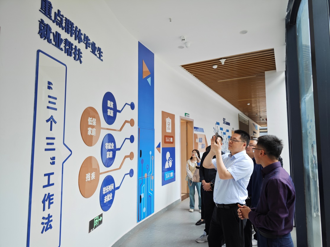 在就业育人综合体,夏高发向调研组深入介绍了我校毕业生就业的相关情况,参观了5G云就业体验厅、宜就业驿站、人才集市、省级职业指导室、平实之心生涯咨询工作室和就业服务大厅等。